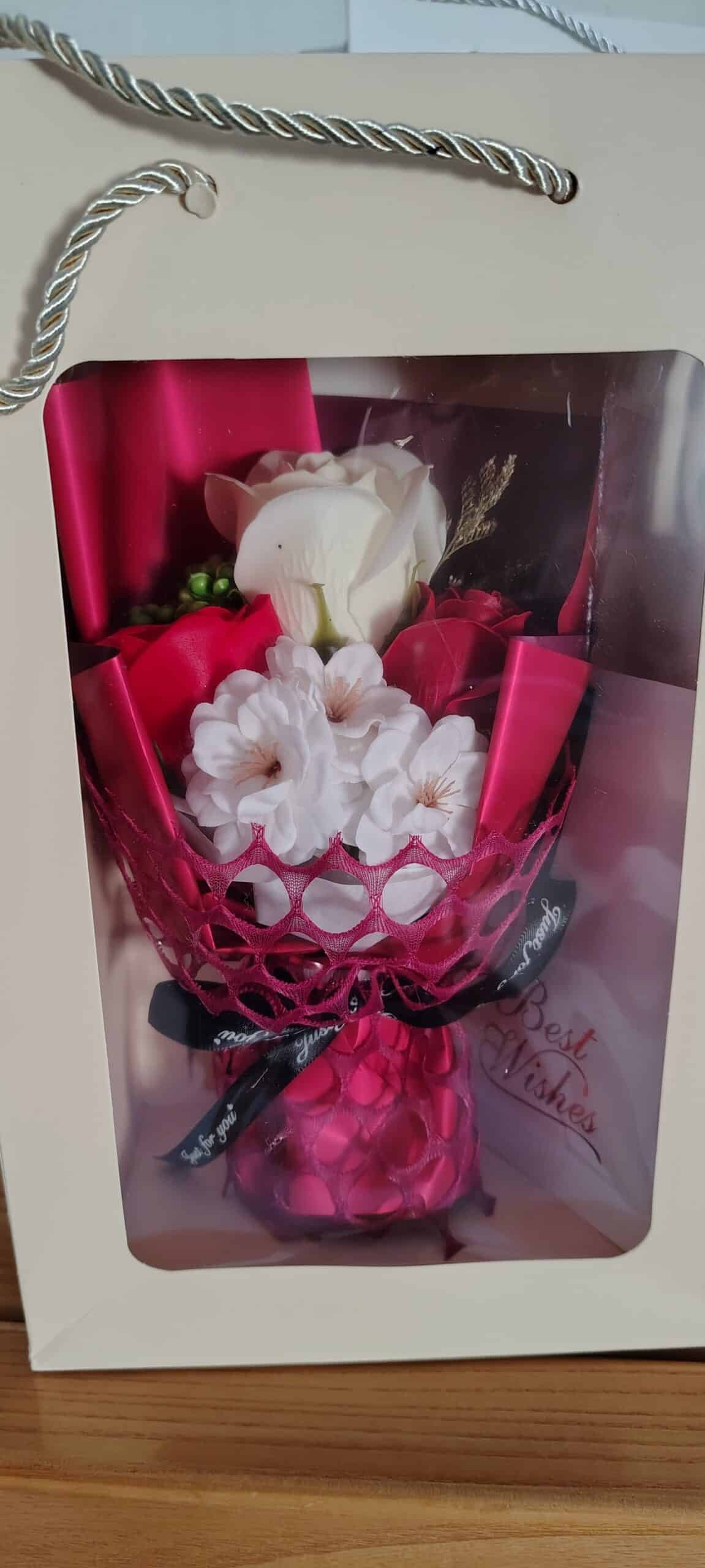 Le coffret est magnifiquement présenté. Chaque fleur de savon est une petite œuvre d’art. Ça décore la salle de bain en attendant d’être utilisé